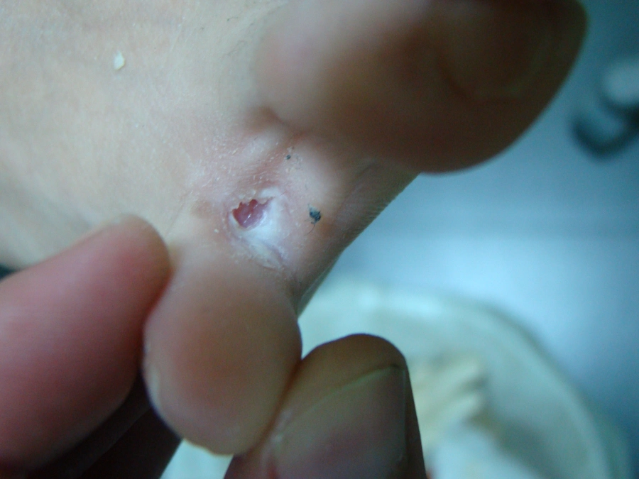“Ojo de pollo” o heloma interdigital: Esta lesión también se produce por la fricción y presión. Los “causantes” son los huesos de los dedos cuando rozan unos con otros. El “ojo de gallo” se localiza entre los dedos del pie, con más frecuencia entre el cuarto y el quinto dedo.