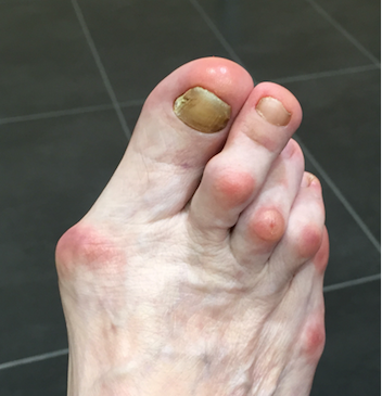 • Dolor en los dedos afectados al caminar o usar zapatos